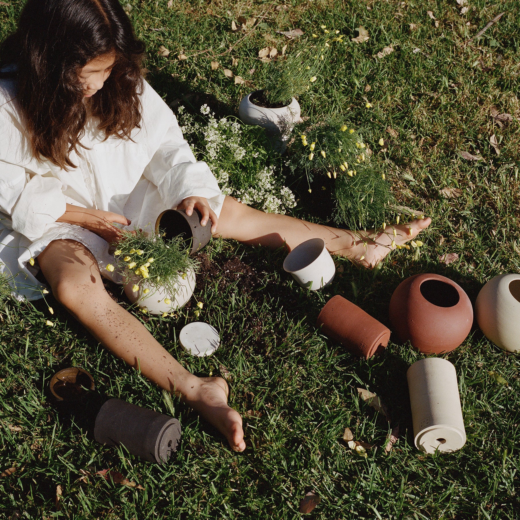 • A Sanso planter + saucer set (choose from the Medium Orb or Cylinder in three colorways)